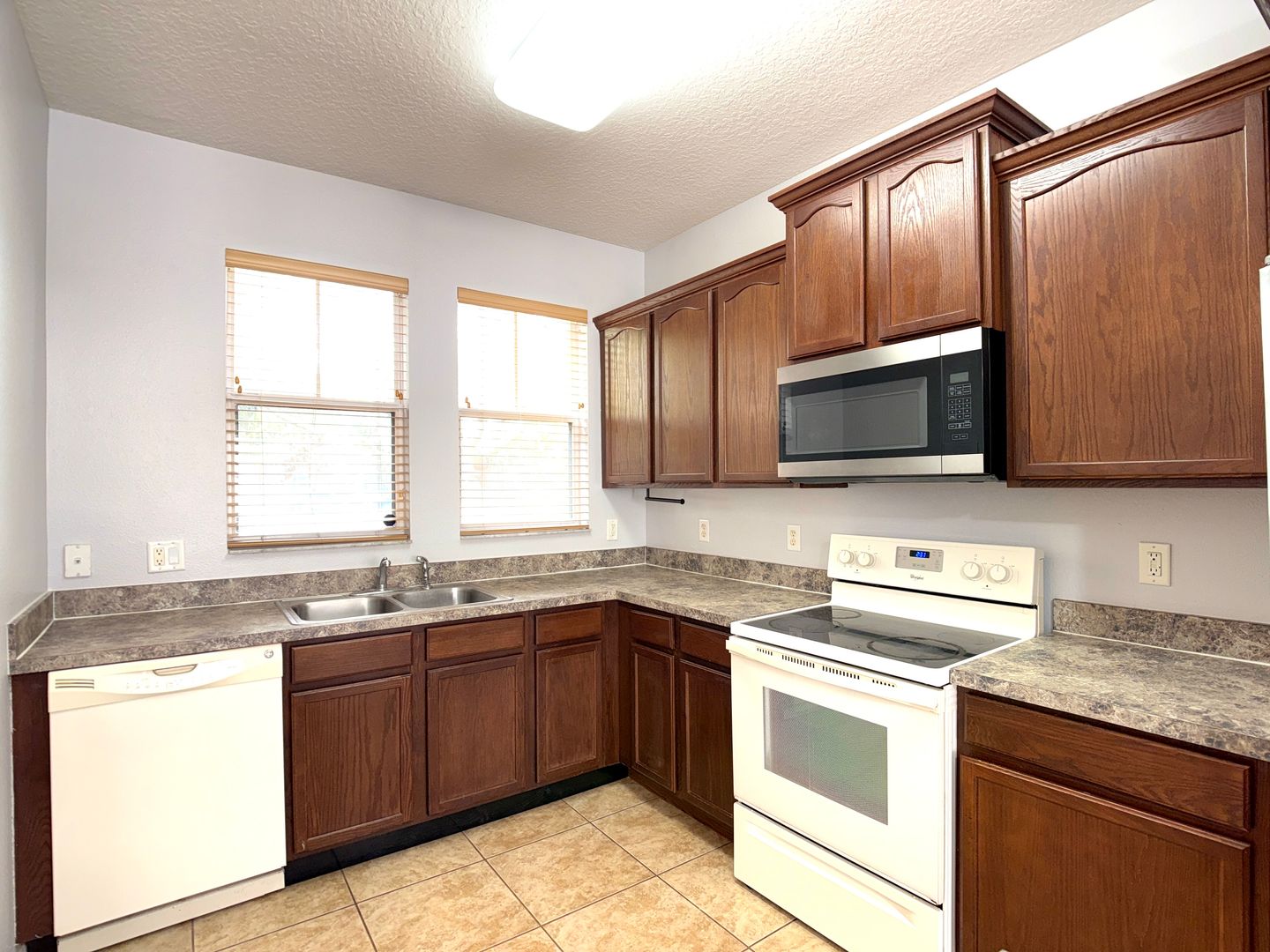 Move-In Ready & Pet-Friendly! Charming 2-Bedroom, 2.5-Bath Townhome Minutes from Disney Step onto the inviting brick-paved entrance and discover this beautifully updated townhome featuring fresh interior paint and new carpets. The open-concept living and dining area flows seamlessly to the kitchen, which is fully equipped with all appliances and ready for move-in. The spacious master suite offers a generous walk-in closet, while the master bath features a tiled walk-in shower and dual sinks for modern comfort. Carpeted living areas and tile in wet spaces provide both style and easy maintenance. Enjoy a private, fenced-in courtyard with direct access to the garage, offering added privacy and convenience. Residents of this community have access to a wide range of amenities, including pools, a fitness center, tennis and basketball courts, and scenic walking and biking trails. Located just minutes from Walt Disney World Resort, Lake Hancock, the Golden Bear Club, plus numerous restaurants and shopping destinations. Front yard lawn care is included, while the back yard remains your private oasis. Washer and dryer are included as a convenience. Don’t miss this incredible opportunity to live near the magic — schedule your showing today!