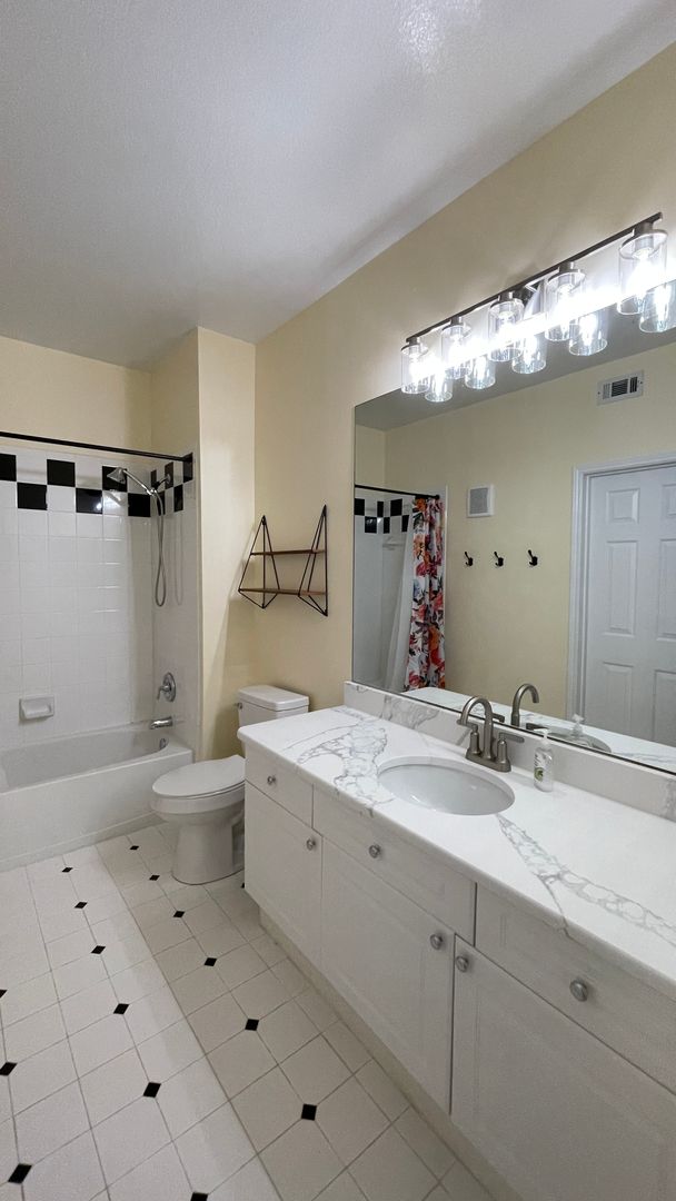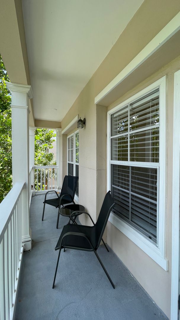 Prime Location in the Highly Sought-After Celebration Neighborhood! Internet Included! This charming 1-bedroom, 1-bath condo with a bonus room is nestled in the heart of Celebration. Located on the 3rd floor, this open-concept unit features a modern kitchen with stainless steel appliances, including a refrigerator, dishwasher, glass-top range, and over-the-counter microwave. Crisp white cabinetry, a stylish backsplash, breakfast bar seating, and recessed lighting add to the kitchen's appeal. The spacious living/dining area opens to a large east-facing balcony with beautiful views of the Water Street Canal. The generous master bedroom includes a huge walk-in closet, while the ensuite bathroom offers ample storage with a 3-door vanity and plenty of counter space, along with a tub/shower combination. The bonus room is perfect as a home office or guest room, and the unit includes a convenient stackable washer and dryer. Two parking passes are provided. Celebration Village offers excellent amenities, including a fitness center, tennis courts, and a community pool. Enjoy a short walk to Celebration Town Center to experience the charm of the town, scenic lakefront walks, delightful dining, unique shops, and festive seasonal events. This condo is conveniently located minutes from Celebration Town Center, ESPN Wide World of Sports Complex, Disney Theme Parks, AdventHealth Nicholson Center, shopping, restaurants, and more. Internet Included.