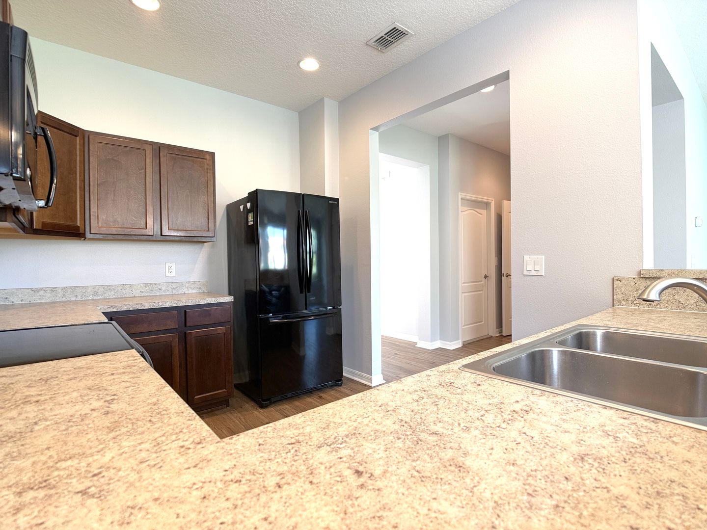 Perfectly Priced! Gated Community! Fresh Interior Paint! Pet Friendly! Lovely 4-Bedroom, 2.5-Bath End-Unit Townhome in a Resort-Style Community Welcome to this beautifully maintained end-unit townhome featuring charming Mediterranean-style architecture, a tile roof, and a paver driveway that adds to its curb appeal. Inside, you’ll find a spacious open-concept layout combining the kitchen, dining, and living areas — ideal for both everyday living and entertaining. The kitchen is equipped with matching black appliances, including a glass-top range, dishwasher, and bottom-freezer refrigerator. The main living areas are conveniently located on the first floor, while all four bedrooms are privately situated upstairs. The generously sized primary suite features a full en-suite bath with dual vanity sinks and a shower/tub combination. The laundry room is thoughtfully located on the second floor for added convenience. Washer and dryer are included as a convenience item. Updated interior photos will be provided once the property is vacant. Located in the sought-after Tuscany Preserve, residents enjoy resort-style amenities including a scenic lakefront park with picnic pavilions, clubhouse, fitness center, tennis courts, and a sparkling community pool — offering a lifestyle of comfort and leisure. Schedule your private showing today — this one will not last!