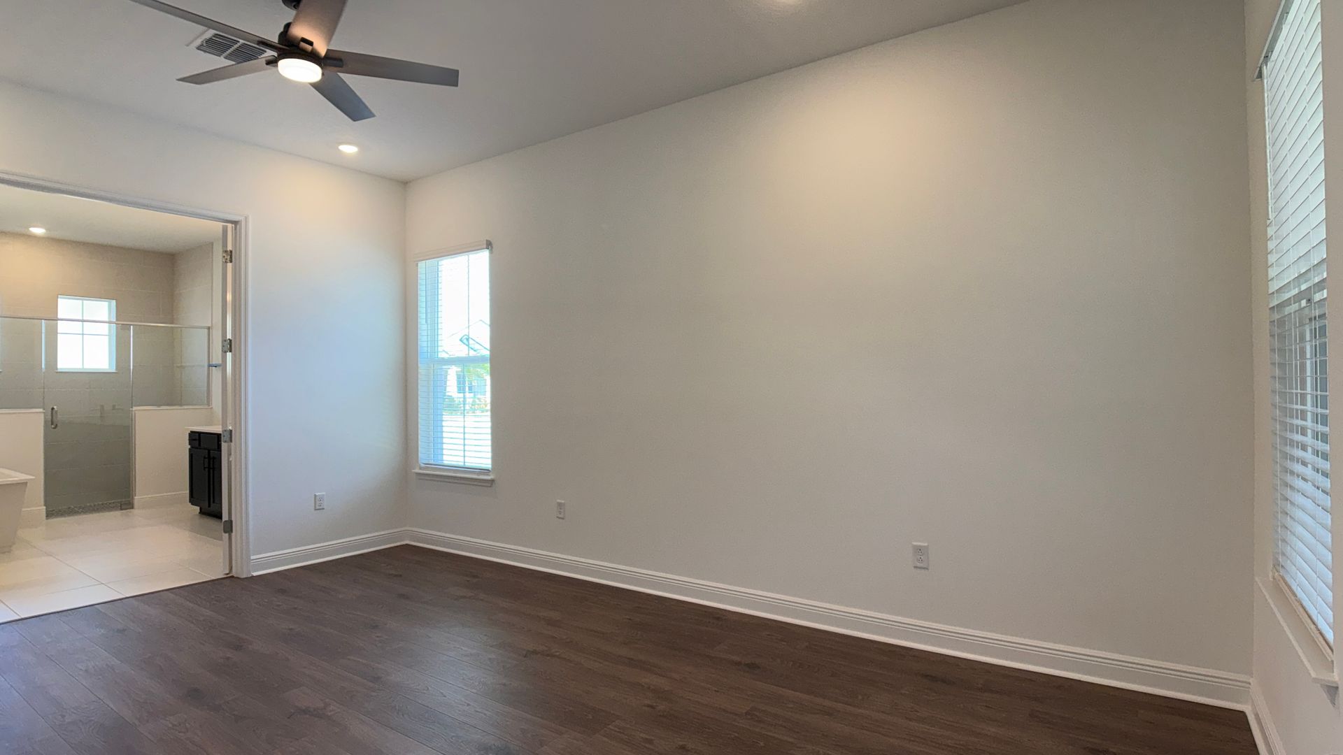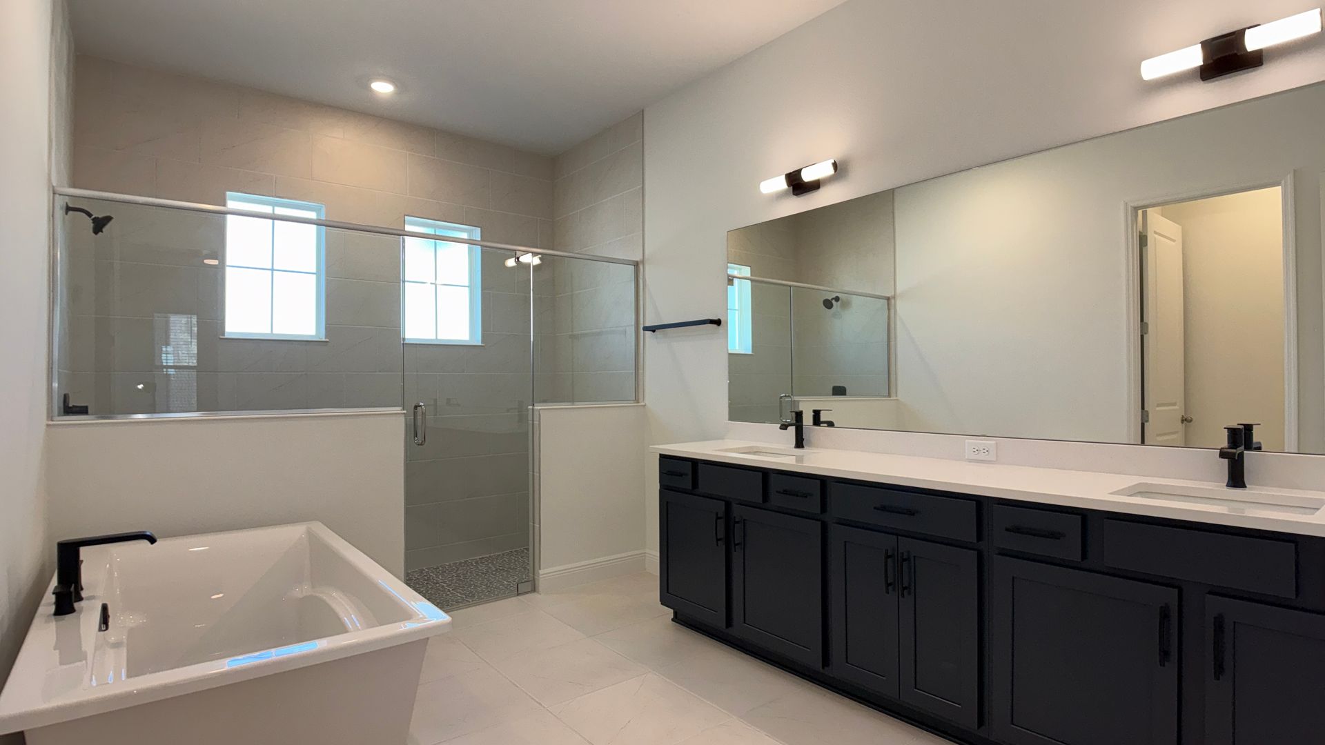 The first-floor master suite is a serene retreat, with double doors opening to a private, spa-inspired ensuite featuring a massive walk-in shower, separate soaking tub, and dual-sink vanity with abundant cabinet space. Upstairs, the versatile loft and bonus room offer endless possibilities as a vibrant game room, quiet home office, or cozy home theater. Additional bedrooms are generously sized, and the baths reflect the upscale décor found throughout the home.