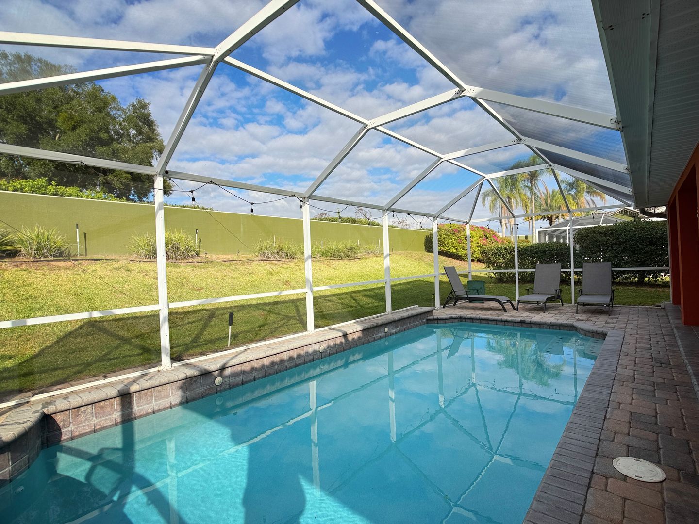 Step outside to a pavered, screened-in covered lanai overlooking the private pool, creating the perfect space for outdoor living and dining. Pool maintenance is included for added convenience.