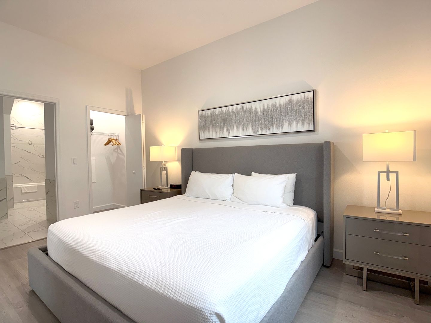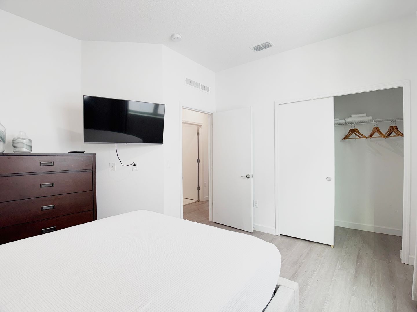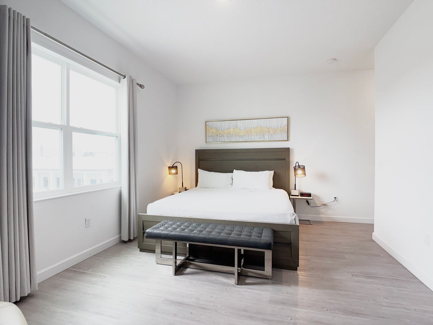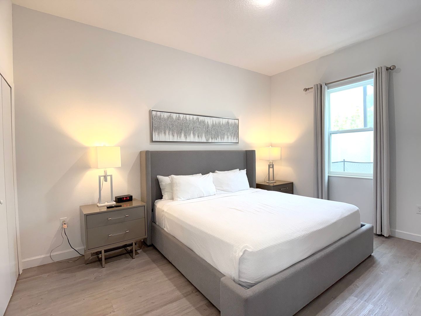 Fully Furnished & Move-In Ready – Lawn care, pool maintenance, and pest control are included in this stunning 5-bedroom, 5-bath townhome located in a secure, gated community. Modern comfort meets sleek, contemporary design throughout. The open-concept layout features a spacious great room connecting the kitchen, dining, and living areas—perfect for entertaining or everyday living. The kitchen is a minimalist dream, with slab cabinet doors, stainless steel appliances, stone countertops throughout, and a large island with seating. Two primary suites provide flexibility and luxury—one on the first floor with a double-sink ensuite, and the second on the upper level. Additional bedrooms are generously sized and beautifully decorated. A stackable washer and dryer on the second floor adds extra convenience. Step outside to enjoy a screened-in pool, paver deck, and plenty of space for lounging and relaxation. Residents of Azur Resort enjoy a state-of-the-art clubhouse, community pool, fitness center, and miniature golf. The location puts you minutes from Disney Parks, Champions Gate, Posner Park Mall, top restaurants, grocery stores, and entertainment options. With quick access to US-27, I-4, and Ronald Reagan Parkway, commuting and exploring Central Florida is a breeze. This home combines luxury, convenience, and resort-style living—schedule your showing today!