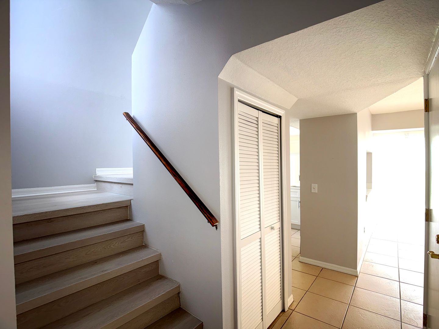 Location, lifestyle, and value—this move-in ready, pet-friendly home in the highly desirable Four Corners area has it all! Step inside to find fresh interior paint, vaulted ceilings, and a bright open floor plan that seamlessly connects the kitchen, living, and dining areas—perfect for comfortable living and entertaining. The upgraded kitchen features new crisp white shaker cabinets and sleek new quartz countertops, offering a modern and inviting space. Enjoy brand-new vinyl flooring throughout all bedrooms and stairs, adding both style and durability. This home offers two bedrooms on the second floor with en-suite bathrooms, including a spacious primary suite. A new stackable washer and dryer are included as a convenience item. Ideally located just minutes from Cagan’s Crossing, Champions Gate, Disney theme parks and resorts, Posner Park Mall, supermarkets, and major roadways including US-27, US-192, SR-429, I-4, and Ronald Reagan Parkway—making commuting and entertainment a breeze. HOA approval is required. Assigned Parking for 2 only.
