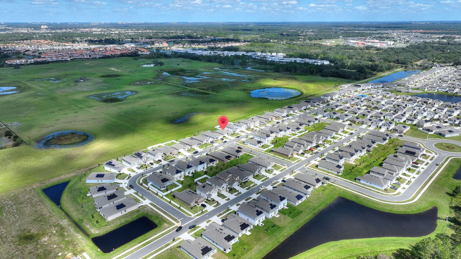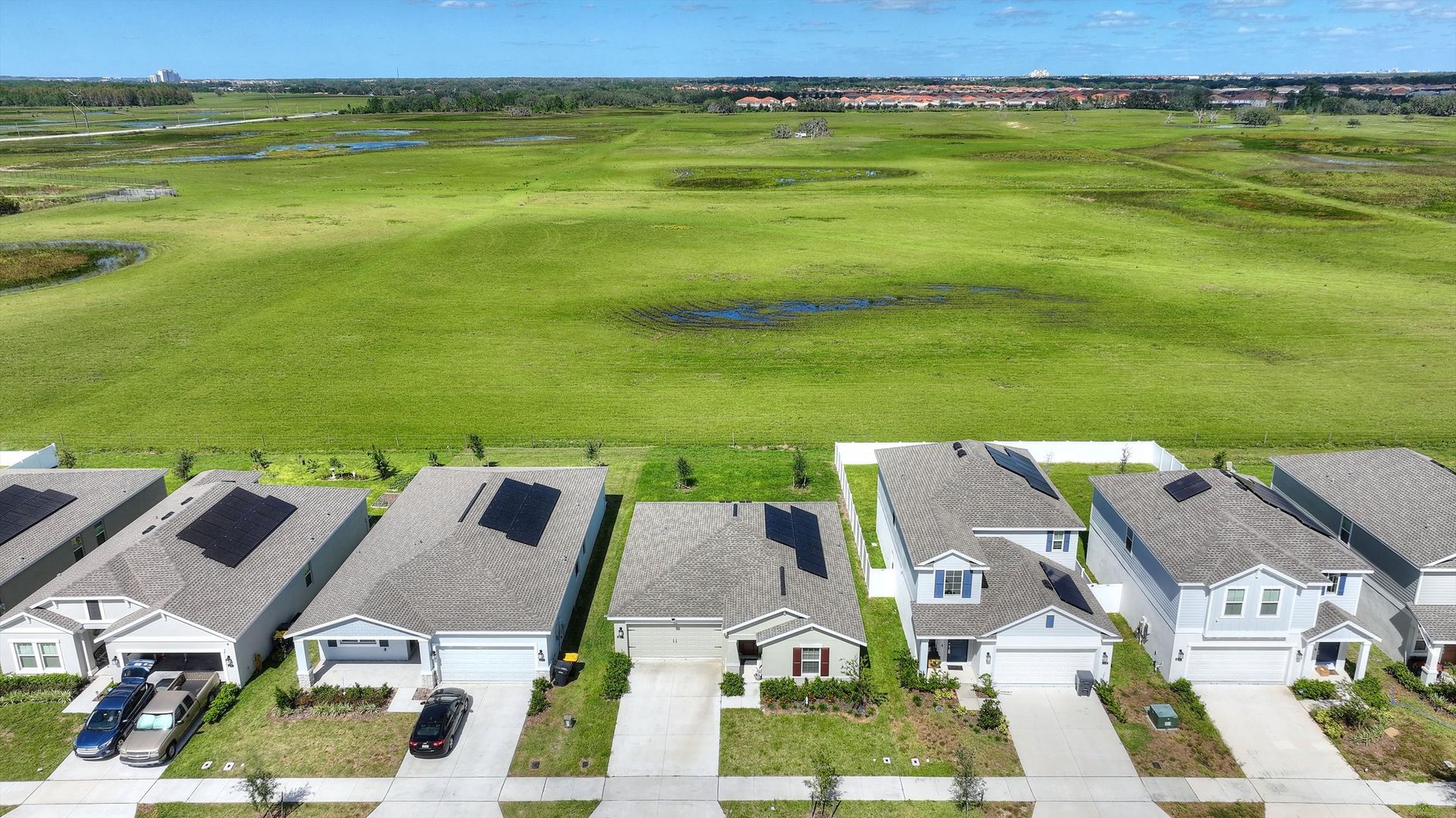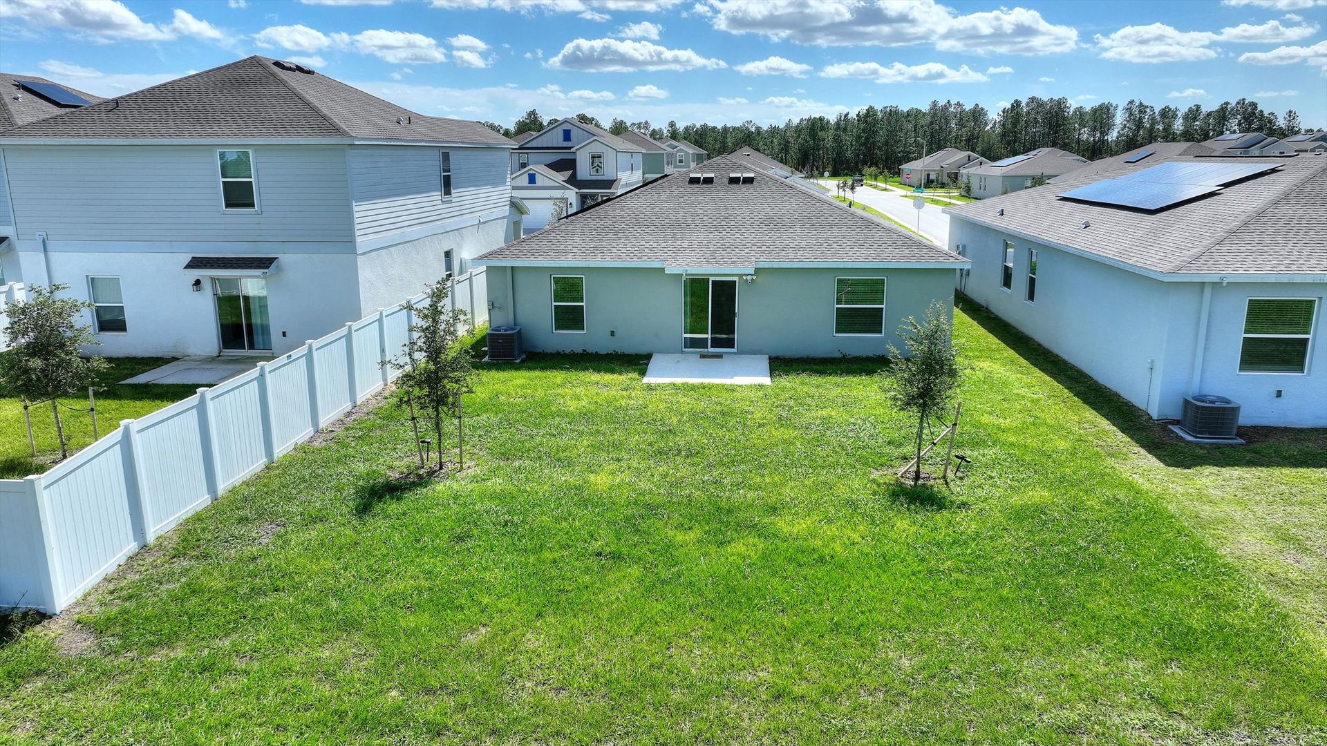 Move-In Ready Home in Astonia! No Rear Neighbors! Solar Panels! Step right into this beautiful 2023 three-bedroom, two-bath home, ready for immediate move-in. Designed with comfort, style, and efficiency in mind, this home features solar panels to help reduce energy costs, double-pane windows for improved insulation and noise reduction, and keyless entry for added convenience. The open-concept layout offers high ceilings and a bright, modern kitchen with crisp white cabinets, recessed lighting, a walk-in pantry, and a spacious breakfast island, ideal for casual meals or entertaining. The primary suite provides a peaceful retreat with a large walk-in closet and an en-suite bath featuring a double-sink vanity and walk-in shower. Enjoy the privacy of a backyard with no rear neighbors, perfect for relaxing or hosting guests. A washer and dryer are included as a convenience item. Nestled in the resort-style community of Astonia, residents have access to a sparkling community pool, covered pavilion, and playground. Plus, you’re just minutes from shopping centers, major highways, medical facilities, and all the excitement of nearby theme parks. Make Astonia your home and embrace the best of convenience, and community living!