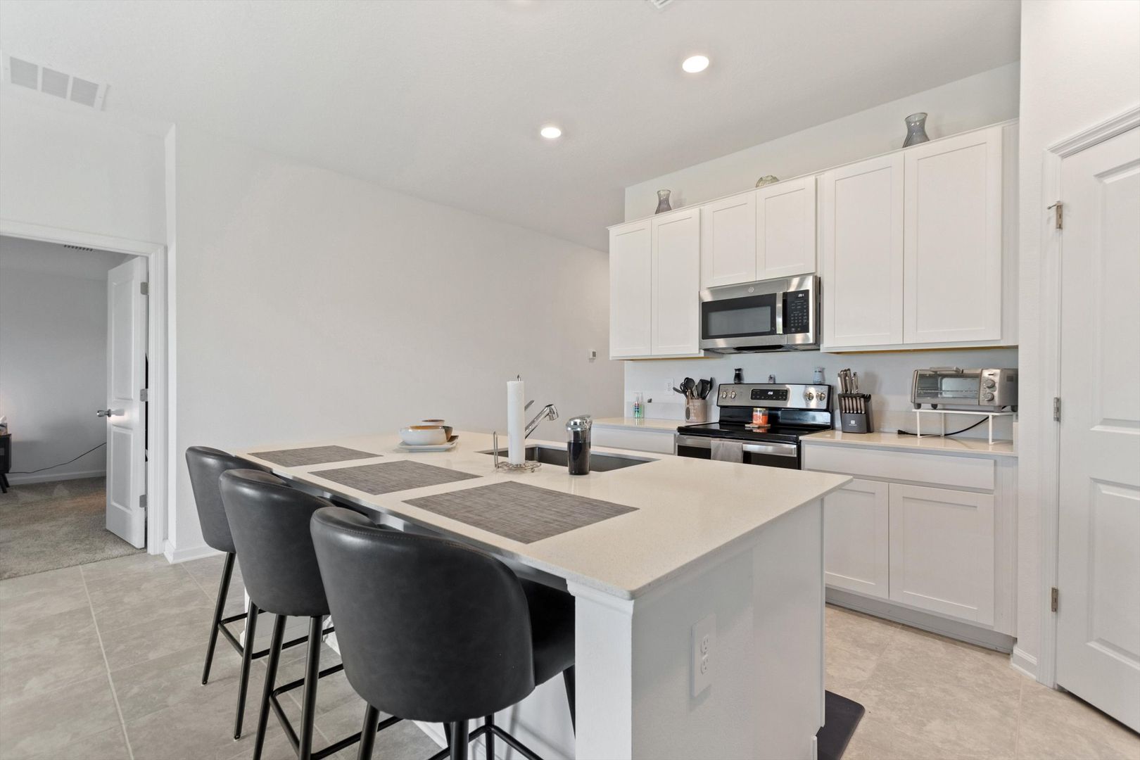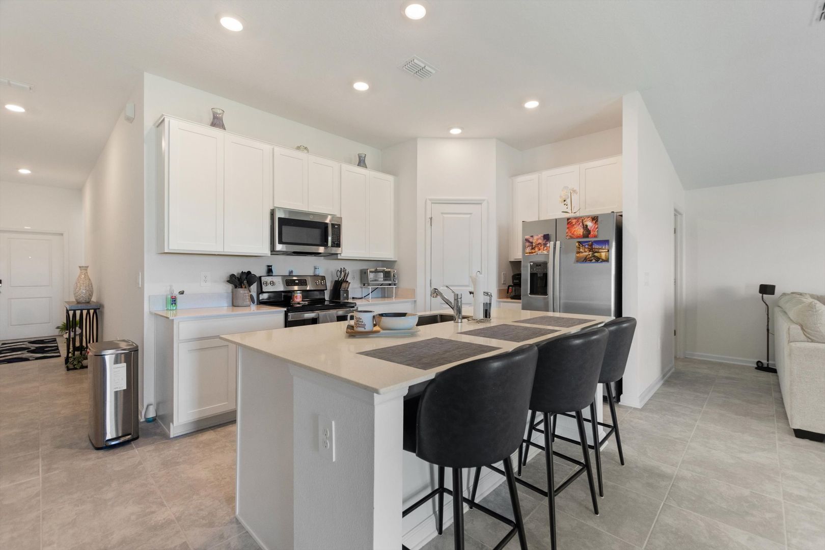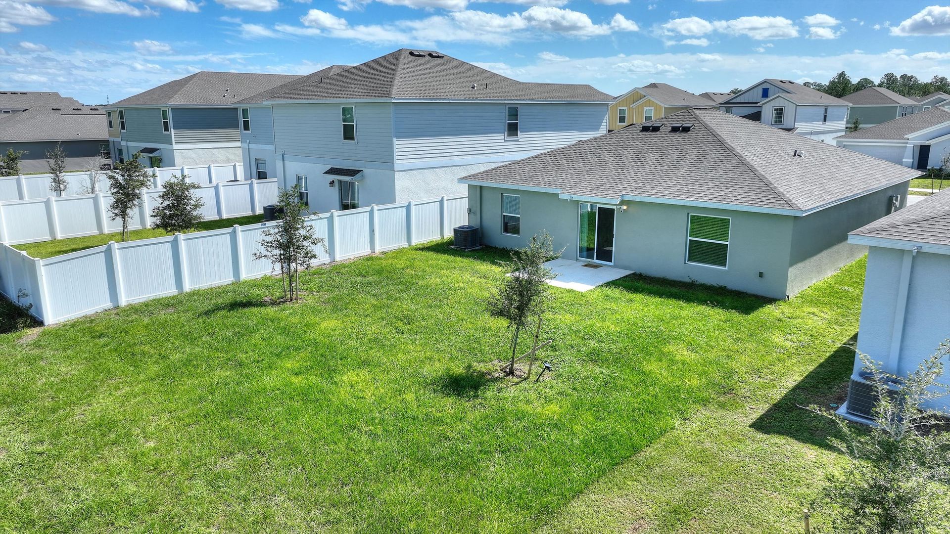 Move-In Ready Home in Astonia! No Rear Neighbors! Solar Panels! Step right into this beautiful 2023 three-bedroom, two-bath home, ready for immediate move-in. Designed with comfort, style, and efficiency in mind, this home features solar panels to help reduce energy costs, double-pane windows for improved insulation and noise reduction, and keyless entry for added convenience. The open-concept layout offers high ceilings and a bright, modern kitchen with crisp white cabinets, recessed lighting, a walk-in pantry, and a spacious breakfast island, ideal for casual meals or entertaining. The primary suite provides a peaceful retreat with a large walk-in closet and an en-suite bath featuring a double-sink vanity and walk-in shower. Enjoy the privacy of a backyard with no rear neighbors, perfect for relaxing or hosting guests. A washer and dryer are included as a convenience item. Nestled in the resort-style community of Astonia, residents have access to a sparkling community pool, covered pavilion, and playground. Plus, you’re just minutes from shopping centers, major highways, medical facilities, and all the excitement of nearby theme parks. Make Astonia your home and embrace the best of convenience, and community living!